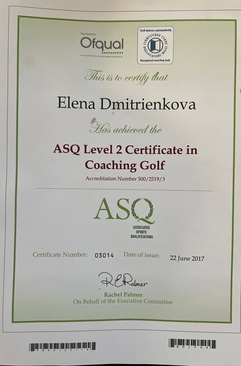 PGA гольф-профессионал Начала играть в гольф в 2000 году в академии гольфа Moscow Country Club. Выступала за сборную команду России с 2004 по 2010 годы, КМС. Участник всемирной универсиады,призер кубка России, призер европейских студенческих игр Образование: Университет Бирмингема (Великобритания) Foundation Degree in Science (Professional Golf Studies, PGA Training Programme in Golf Coaching, Sport Science, Equipment technology, Business Management, Rules of Golf & Tournament Organisation). Прошла курс ASQ Golf Coaching Level 1. Прошла курс ASQ Golf Coaching Level 2. Прошла стажировку в Els Performance Golf Academy Прошла курс Golf Biomechanics and Golf Science, Mark Bull Trackman University, Trackman Professional Level 1 В 2025 году поступила в Финансовый Университет при Правительстве РФ на программу EMBA в гольф-индустрии