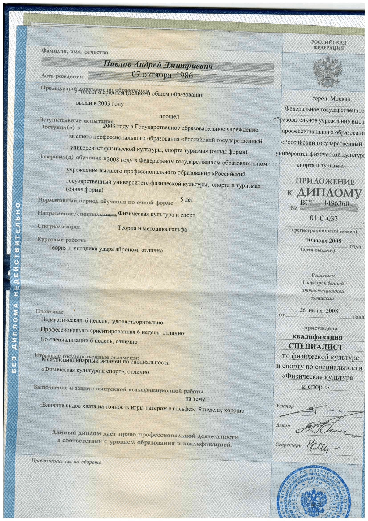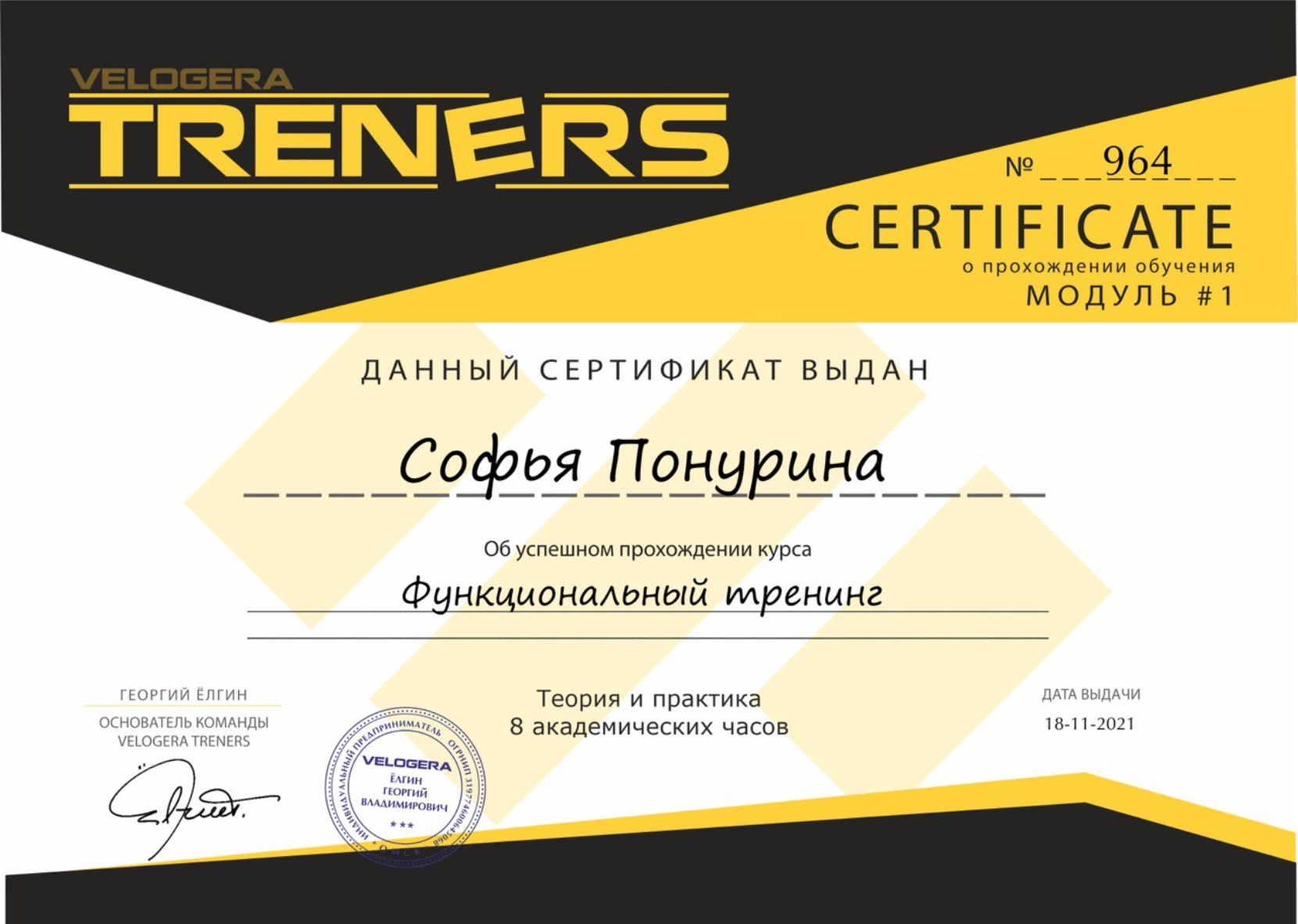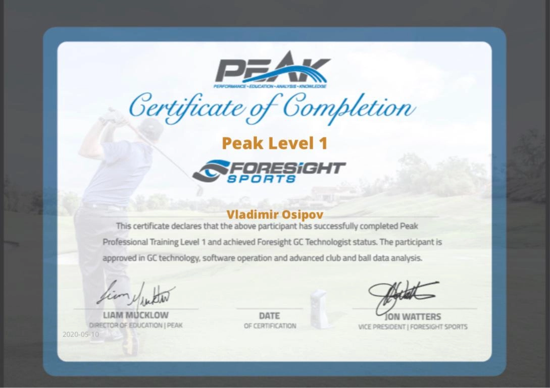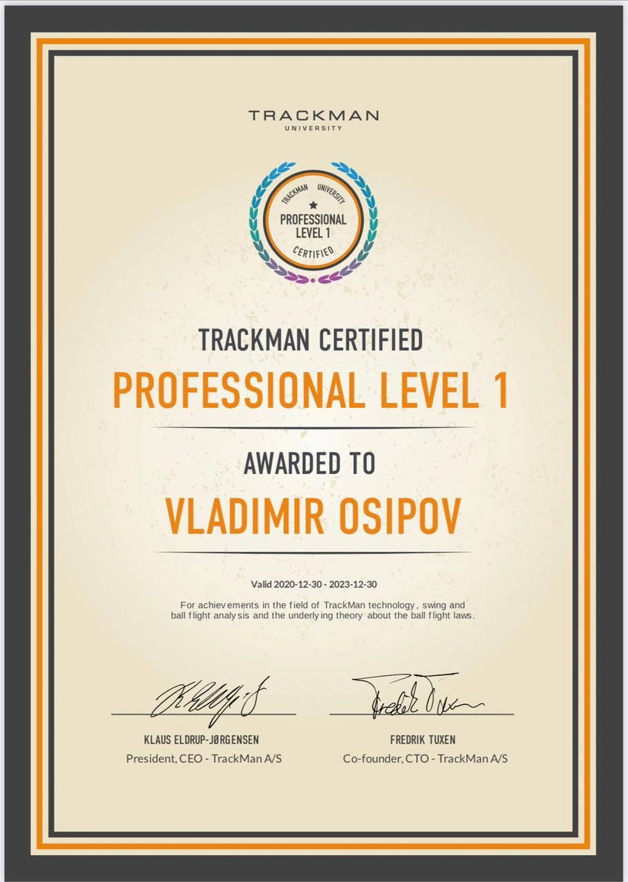 Тренер по гольфу с 5-летним опытом. Обучает детей 6–18 лет технике, тактике и ментальной подготовке. Использует современные методики, видеоанализ (TrackMan) и индивидуальный подход. Окончил ГЦОЛИФК, кафедра гольфа (2019–2024).